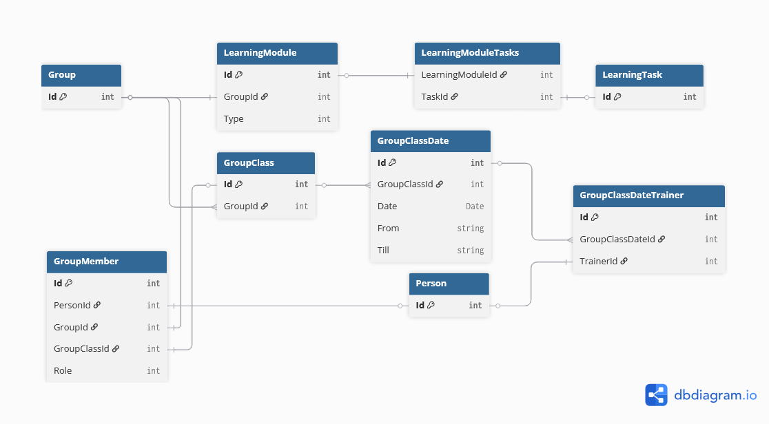 GroupClassDateId int [ref: > GroupClassDate.Id]